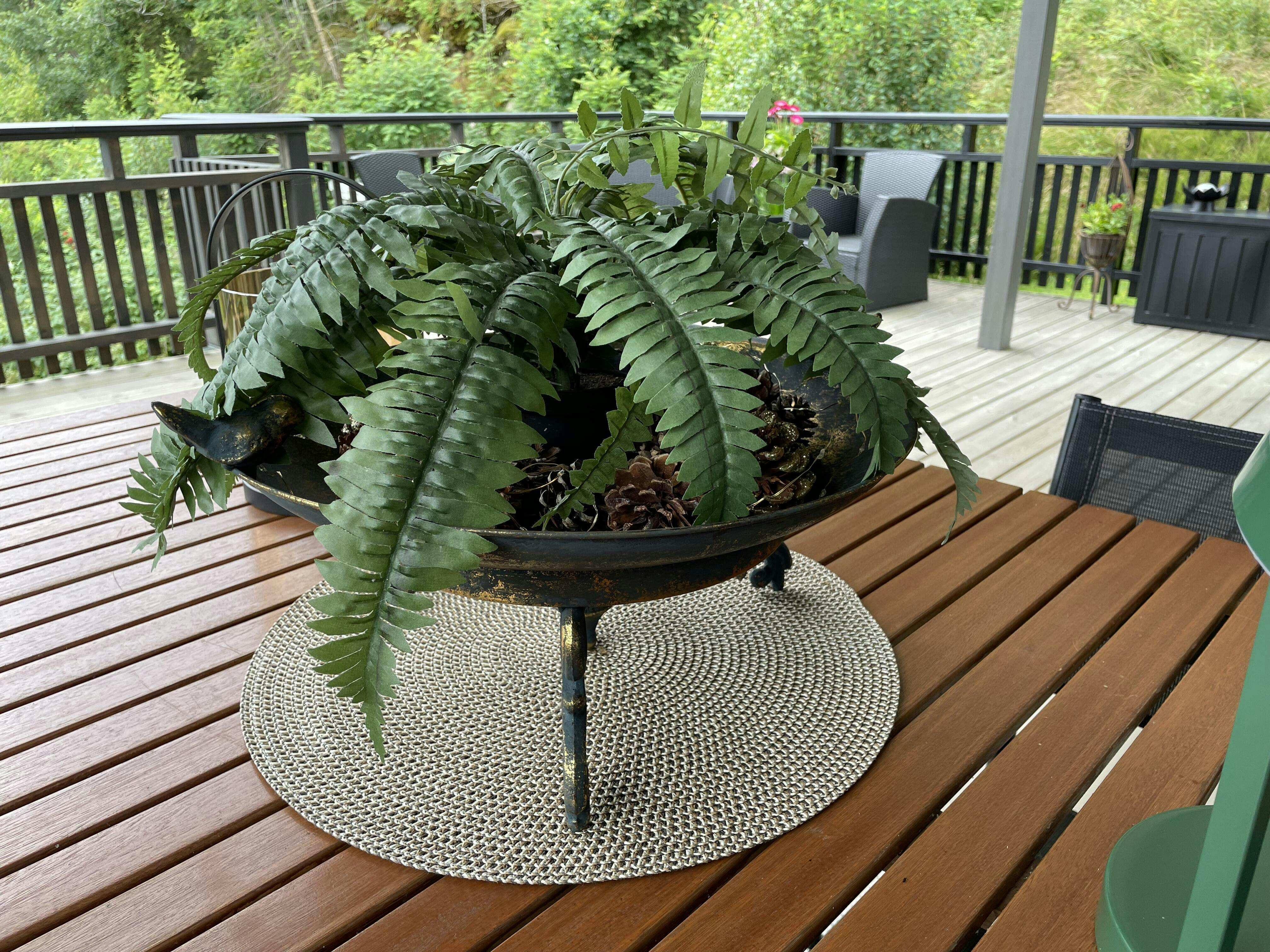 Anbefalt bruk er til dekorasjon og planter. Det er ikke behandlet for å tåle vann, vær og vind over tid. Dersom det gjør det kan den ta skade og ruste.