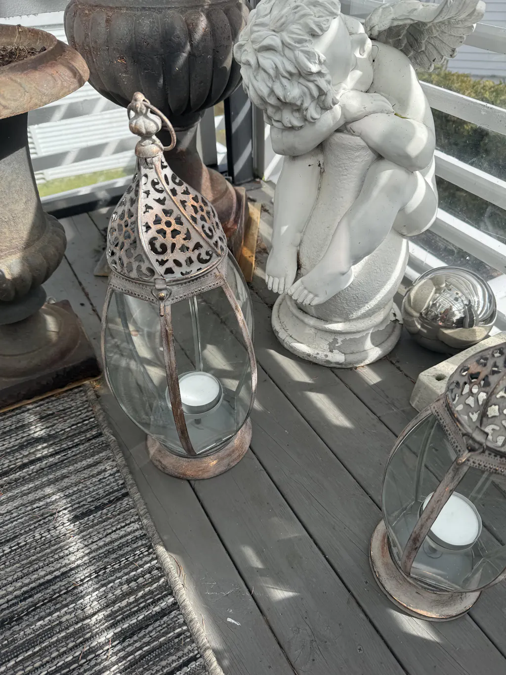 Romantisk lykt i en vakker antikk messing finish med dekorativ mønster. Tidløst landlig uttrykk.