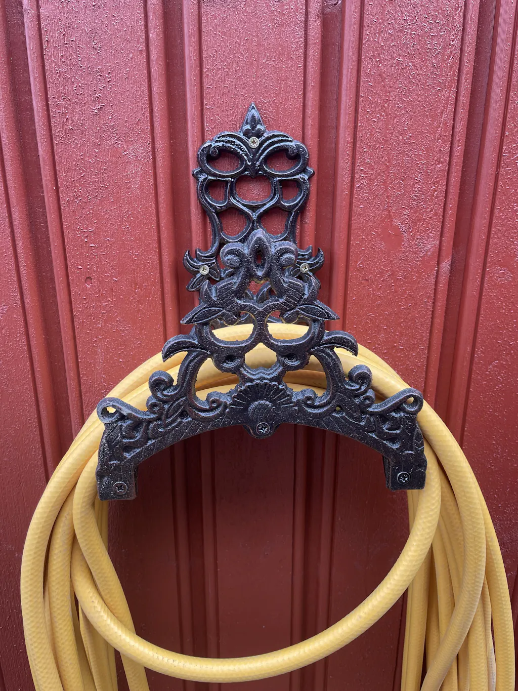 Klassisk holder til hageslangen som er håndlaget av støpejern i henhold til gamle tradisjoner. En hageslange er uunnværlig i hagen, men oppbevaringen er vanskelig å bli fornøyd med. Her får du en vakker og praktisk detalj til hagen som vi er trygge på at du kommer like.